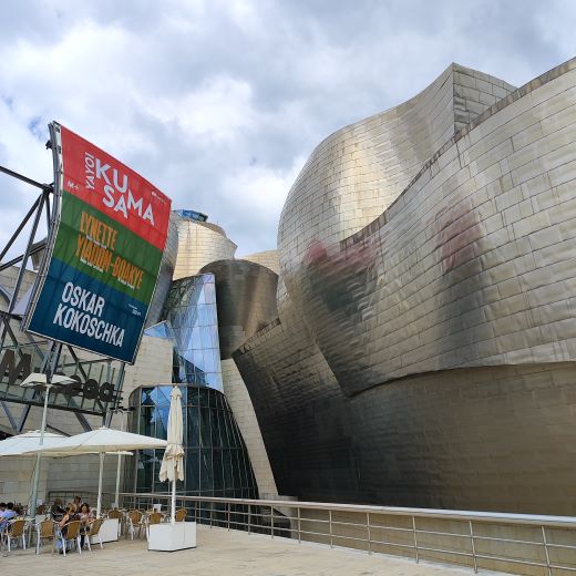 Ciao cara compagna di viaggio, cercherò di parlarti del mio viaggio interiore, delle emozioni che mi ha scatenato questa nostra piccola avventura. Inizio dalla nostalgia, perché è da lì che è nato per me questa voglia di Spagna, che amo come terra ma soprattutto come popolo, come gente. Passando per la curiosità, che abbiamo vissuto insieme per aver scelto una regione unica come il Paese Basco, e la gioia, per la mente e per il cuore, di averlo trovato più bello di come ci aspettavamo. Ecco, con queste premesse c'è già tutto il materiale che fa di un viaggio un'esperienza. O vogliamo dire anche dello stupore, per aver trovato la nostra amata Yayoi Kusama ad accoglierci al Guggenheim, una vera sorpresa, un benefico shock, di quelli che piacciono a noi! E poi mi resta tutto, i bellissimi miradores di Vitoria, la sua luce, i tapis roulant e le scale mobili in città, le cañas bevute, quel bel modo di stare a zonzo. Il nostro giretto senza mariti in quel paesino che più basco non si può! Ancora non ho parole per la seducente San Sebastián - Donostia, per le spiagge oceaniche che abbiamo visto e per tutti i sorrisi che abbiamo incrociato! Per la gioia di aver percorso quel magico cammino medievale a picco sul mare, dal nome ancora impronunciabile, che rifarei anche adesso, ti giuro. La notte particolare a Guernica, dove in altri tempi avremmo rinunciato a dormire per continuare a gironzolare e vedere che faceva la gente fino alle 4 del mattino, tanto non ho dormito e comunque si dorme sempre, non è così importante. E poi Bilbao… ottima scelta averla lasciata alla fine, con quella sua aria un po' stanca, un po' consumata, sbadata, multietnica e calorosa, con le sue sorprese dietro l'angolo, con educata "non chalance". Del meraviglioso Guggenheim ho già detto, ma lo ripeterei sempre… anche da solo varrebbe il viaggio, ma che dire del meraviglioso ponte traghettatore, solo l'idea è geniale, ma nessuno lo conosce, perché quello che adoro di questo popolo è che le cose le fanno fondamentalmente per loro, per soddisfare i loro bisogni, poi se capita le condividono a braccia aperte, ma questo per loro è secondario. Ho cercato di esprimerti i sentimenti che mi porto dentro e desidero conservare, insieme alla gioia per aver condiviso con Renato, con te e con Gino tutto questo! Marina