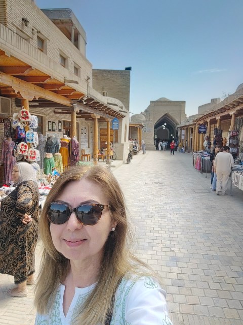 Il primo ostacolo subito alla partenza è stato il guasto dell'aereo della Turkish Airlines. Dopo un quarto d'ora di volo siamo rientrati a Malpensa. Invece di trascorrere una notte in volo, abbiamo trascorso una notte all'hotel Ibis vicino all'aeroporto. Abbiamo perso un giorno a Tashkent ma il tempo che avevamo a disposizione era sufficiente. Posso dire che ci è andata bene. Il desiderio di visitare uno dei Paesi del "Sovietistan" è nato quattro anni fa quando ho lessi il libro di Erika Fatland con questo titolo. Dopo il crollo dell'Unione Sovietica nel 1991 sono nati gli Stati "...stan", Uzbekistan, Turkmenistan, Kazakistan, Tagikistan e Kirghizistan dove stan significa casa. Ultimamente l'Uzbekistan è diventata una meta turistica molto gettonata. Basta nominare la Via della seta e già la mente viaggia attraverso il deserto, verso terre lontane ricche di ogni ben di dio. Naturalmente i cammelli erano il mezzo di trasporto e ci sono anche adesso, ma non svolgono più questo ruolo. Il mio mezzo di trasporto preferito è il treno. Quando ho letto che in Uzbekistan si può viaggiare benissimo con i treni e che loro sono molto orgogliosi delle loro linee ferroviarie, ho deciso anche io di utilizzarli per muovermi all'interno del Paese. Devo dire che la parte più complicata nell'organizzare il viaggio è stato proprio l'acquisto dei biglietti. E' necessario innanzitutto registrarsi sul sito e solo dopo diversi tentativi, e senza capire proprio tutto quello che stavamo comprando sul sito delle ferrovie uzbeke, ci siamo riusciti. Da Tashkent a Khiva con un treno notturno di 16 ore, Khiva - Bukara 7 ore e Samarcanda - Tashkent con uno veloce 2 ore e mezzo ore di viaggio. Il treno è un modo umano di muoversi perché permette di socializzare con la gente del posto e, in questo caso, anche di dormire insieme. Si può dire che è un viaggio nel viaggio. La prima volta ho fatto questa esperienza in Ucraina da Kiev a Odessa ed è stato bello rivivere le stesse emozioni. Le 13 notti sono state così divise cosi: 3 a Tashkent (1 all'inizio e 2 alla fine), 3 a Khiva, 2 a Bukhara, 2 a Majrum (Nurata) e 3 a Samarcanda. Inserire 2 giorni nella riserva naturale di Nurata per allontanarsi un po' dal solito itinerario turistico è stata un'ottima scelta. Per raggiungere questa località ho contattato un'agenzia locale che mi ha procurato una macchina con autista. Devo dire che il soggiorno in famiglia è stata la parte più bella del viaggio. Ringrazio la mia amica Ilaria che è stata l'anno scorso da loro e mi ha suggerito di andare proprio là. Prima di scrivere cosa ho visto in Uzbekistan vorrei dire cosa ho sentito e provato in Uzbekistan. La gente è genuina, un po' ingenua, curiosa verso il prossimo, gentile. Non credevo che ci fossero ancora posti dove ti chiedono di fare la foto con loro e non ti chiedono i soldi per farla. Tanti anni fa anche in Birmania una ragazzina mi ha chiesto di fare la foto con lei e stavolta è capitato a Samarcanda. Mi sono commossa davanti a uno spettacolo folcloristico a Khiva. A casa dalla famiglia uzbeka, guardando i bambini sorridenti che giocavano sui prati verdi, ho pensato che il paradiso debba essere così. A Bukhara, il giorno dopo il mio compleanno, ho avuto un'esperienza, una lezione che non dimenticherò mai. Adesso posso tornare all'inizio del viaggio; Tashkent è la capitale, dove per prima cosa abbiamo visitato il grande mercato Bazar Chorsu. Sotto una cupola verde su due piani sono disposti tantissimi generi alimentari, dalle spezie alla frutta secca al secondo piano e tutto il resto al pianoterra. Al bazar siamo arrivati con la metropolitana partendo dalla stazione Kosmonavtlar, dedicata ai cosmonauti. La stazione è sontuosamente decorata e molto pulita. Nella vecchia Tashkent ci siamo fermati nella nuova colossale moschea del venerdì Hazroti Imom. Accanto c'è un cantiere dove stanno costruendo un'altra moschea, ancora più grande. In questo luogo ci sono proprio gli abitanti del posto, i turisti stranieri invece sono quasi inesistenti. Al supermercato ho preso delle provviste per il viaggio in treno, seguendo i consigli trovati in rete. Quando ho visto il nostro convoglio in stazione ho sentito battere il cuore fortissimo. L'avventura stava per iniziare e come per magia un uzbeko, un po' brillo, ha abbracciato mio marito augurandogli buon viaggio. Nel corridoio del treno, subito dopo la partenza, ho sentito la voce di una ragazza che veniva verso di me e diceva: “Siamo gli unici occidentali sul treno!" Mi sono girata e ho detto: "Mi dispiace ma ci siamo anche noi." Siamo scoppiate a ridere. Lei era con i genitori e il fidanzato e tutti e quattro erano visibilmente emozionati per questo viaggio. Incontrare la gente così è bellissimo. Arrivati a Khiva ci siamo fermati in stazione in un bar per fare colazione. L'esperienza culinaria dei piatti locali è iniziata con gumma e samsa. Entrambi fanno parte del fast food locale, sono fritti, ripieni con carne e molto gustosi. A piedi siamo arrivati all'ingresso della cittadella costeggiando le spesse mura di mattoni crudi. Dal primo momento l'impressione era da mille e una notte. Anche la nostra sistemazione in una madrasa molto bella è stata importante per vivere questo sogno. L'atmosfera rilassata, l'assenza di macchine, la tranquillità e la bellezza non lasciano indifferenti nessuno. È un museo a cielo aperto, per alcuni un po' finto, ma a noi è piaciuto molto. Cenare al ristorante Terrassa è un "must" non solo per il buon cibo, ma soprattutto per la vista al tramonto quando cambiano le luci e le ombre sui palazzi. Quando scende la sera è molto suggestivo passeggiare nella città illuminata e silenziosa. A Bukhara abbiamo trascorso un giorno intero più due sere. Anche lì eravamo alloggiati in una madrasa vicino alla piazza principale, Lyabi-Hauz. Nel centro della piazza c'è una vasca con l'acqua e i tavoli del ristorante intorno. L'atmosfera è vivace e rumorosa, tipicamente turistica ma n