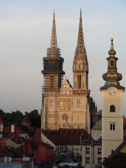 Tutto è stato agevolato dal fatto che i mezzi del pubblico trasporto sono gratis nella zona centrale. Pertanto mi spostavo velocemente con i tram che circolano dappertutto senza dover perdere tempo a cercare dove si comprano i biglietti. Grazie probabilmente a questo fatto, dei tram gratis, il centro di Zagabria sembra abbastanza tranquilla, con poco traffico che scorre velocemente e anche l'aria da respirare non è molto inquinata. Lo stile architettonico prevalente a Zagabria è quello mitteleuropeo in quanto la Croazia per lungo tempo era sotto dominio dell'impero Austro Ungarico. Anche tanti giardini in stile viennese, molto elaborati con le composizioni floreali, e tanto verde fanno parte di questo stile largamente diffuso in Europa. Ci si trova anche qualche grattacielo di recente costruzione con il quale si è cercato di dare alla città anche un aspetto moderno. Il punto centrale è la piazza Ban Jelacic dove passano tutti i mezzi di trasporto. A poche centinaia di metri si trova un'altra piazza molto importante, di Re Tomislav, uno dei primi re dei croati, incoronato nel 925, anche se in effetti ci sono pochi dati affidabili relativi alla sua vita. Il suo monumento domina la piazza. Sulla piazza si affaccia anche la stazione centrale ferroviaria (glavni kolodvor) con una vecchia locomotiva a vapore esposta. La parte più vecchia della città si chiama Gornji Grad (città alta), raggiungibile anche con una funicolare, ed è la che sono raggruppati i principali punti d'interesse, per esempio il parlamento croato e la chiesa di San Marco con un pittoresco tetto sul quale sono dipinti il vecchio stemma croato con la caratteristica scacchiera rosso bianca (quello attuale è una stilizzazione del vecchio, dovuta alle trattative tra le varie regioni della Croazia dopo la conquista dell' indipendenza dalla Jugoslavia nel 1991) e quello della città di Zagabria. Passeggiando per le strade della città alta per caso ho trovato un belvedere, non indicato sulla pianta che utilizzavo per orientarmi. Un bellissimo panorama sulla parte antica della città e soprattutto sulla cattedrale. La cattedrale di Zagabria è stata ultimata e consacrata nel 1217 ed è caratterizzata da uno stile romanico - gotico. Nel 1242 è stata pesantemente danneggiata durante le incursioni dei Tatari ed è stata ricostruita nello stile gotico. Nei secoli a seguire sarà danneggiata e riparata tante volte. Nel 1880 ha subito il colpo più pesante, il Grande Terremoto. La ricostruzione ha cambiato notevolmente l'aspetto della cattedrale, che oggi si presenta in uno stile neogotico. |
